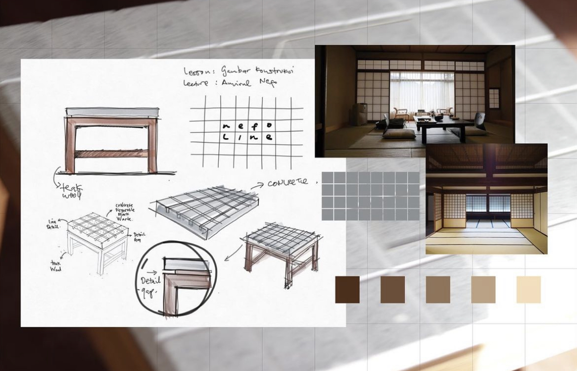 Inspired by an old house window in Japan (Shoji) when we had the opportunity to visit Japan several years ago, not only that, seeing the neat lines produced when sketching also reminded us of one of our teachers in college who taught Constructive courses, where we were trained to be able to make straight lines without the help of a ruler. Therefore NEFOLINE (Pak Nefo Line) is our interpretation of the name of this product.