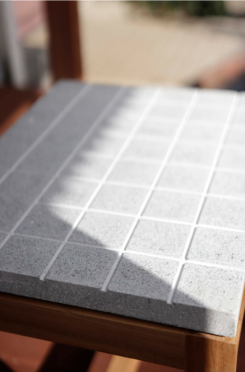 Nefoline uses processed waste material, we use disposable mask waste. After researching for more than 1 year we got good texture results and discovered that using disposable mask waste can lighten the concrete we use by up to 50%. This material has successfully passed the pressure test, and got score on K175